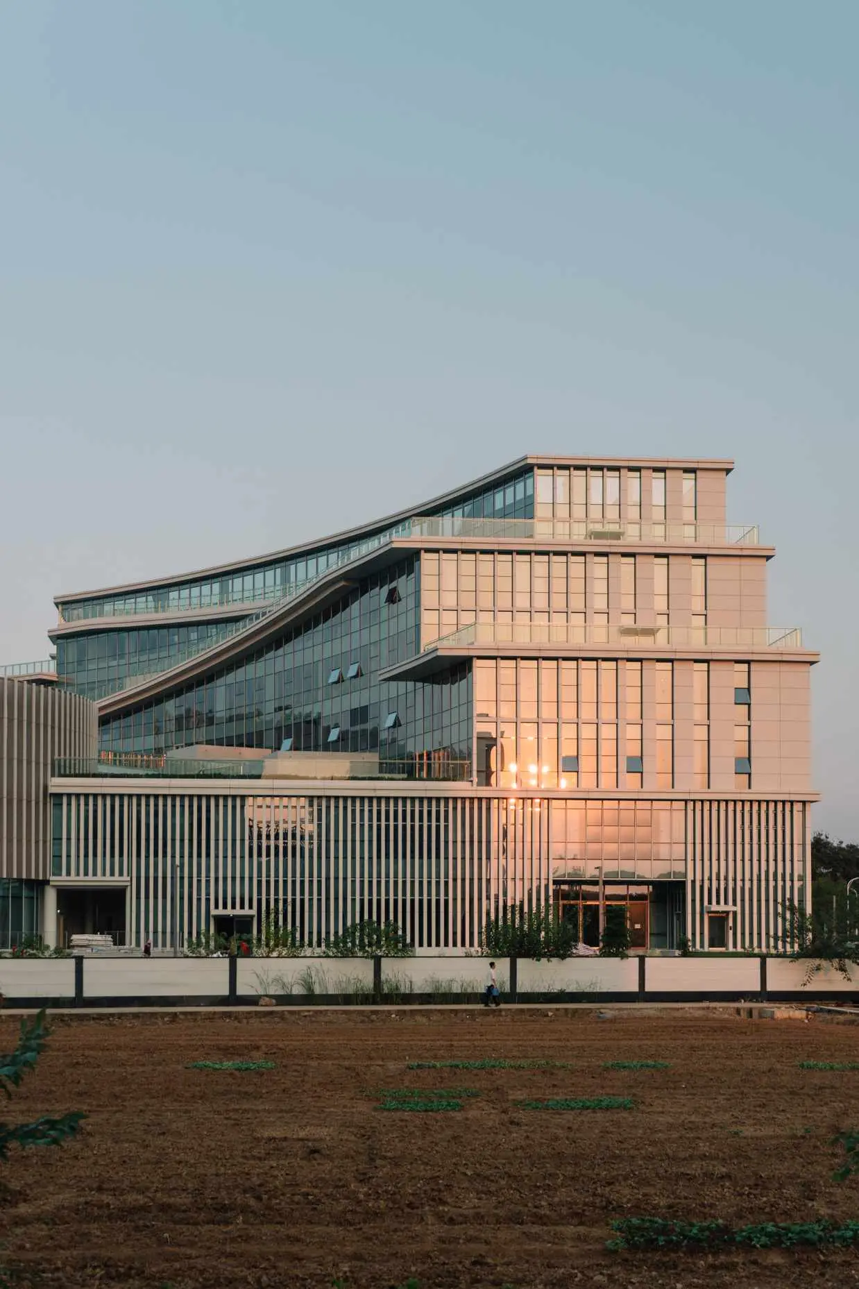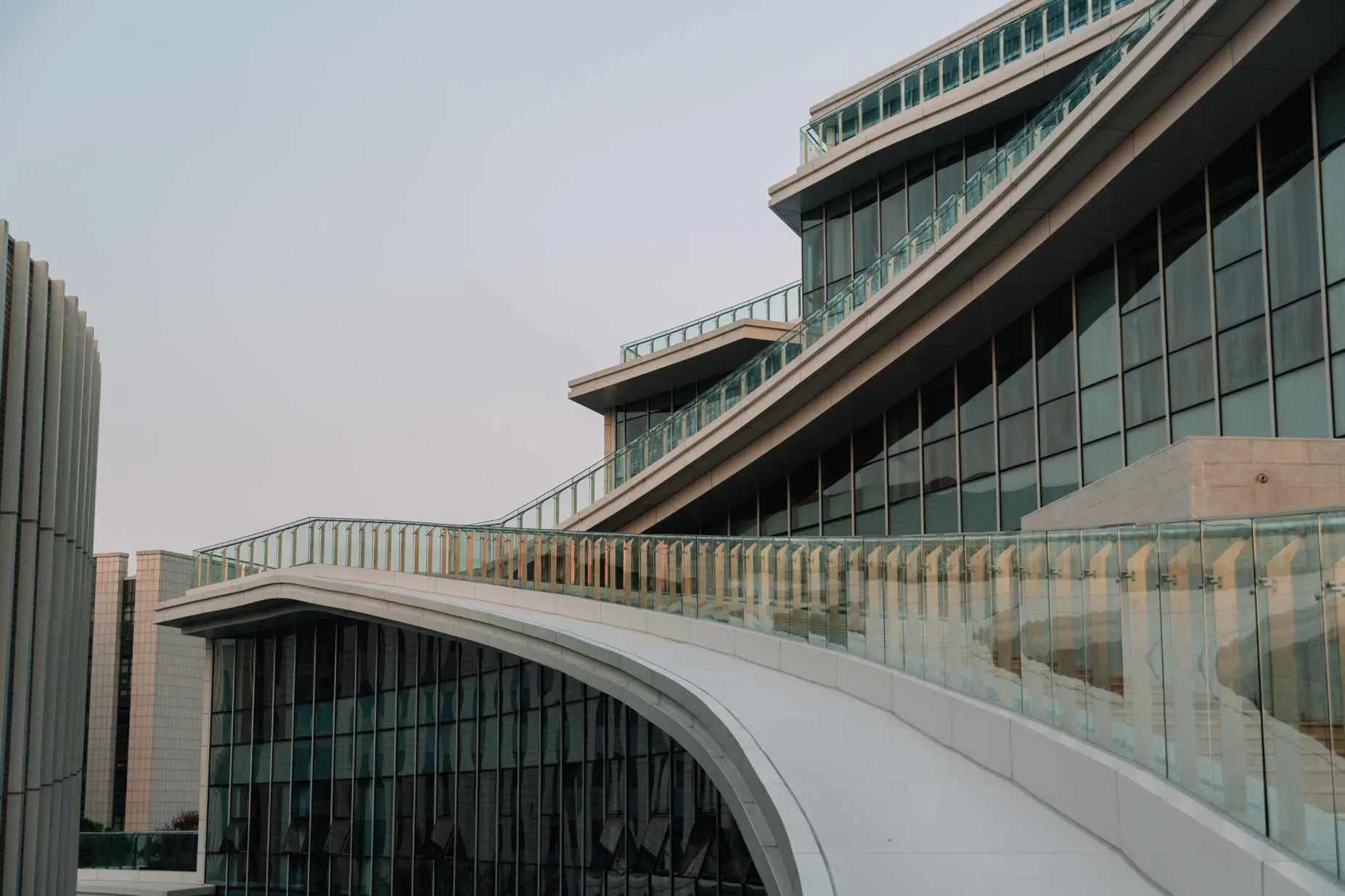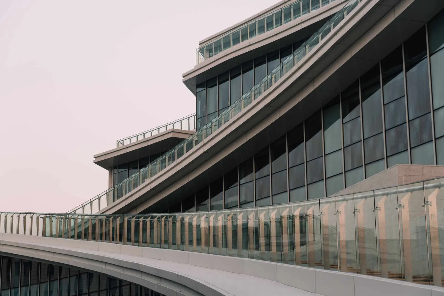 流线型设计 玻璃幕墙 现代建筑风格 结构复杂
